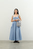 Embodying grace and poise, this dress elevates any occasion. Its neckline and flared skirt radiate sophistication while the delicate fabric ensures ease and comfort, making it the perfect staple piece for any sophisticated wardrobe. Styled it with Audra bag.